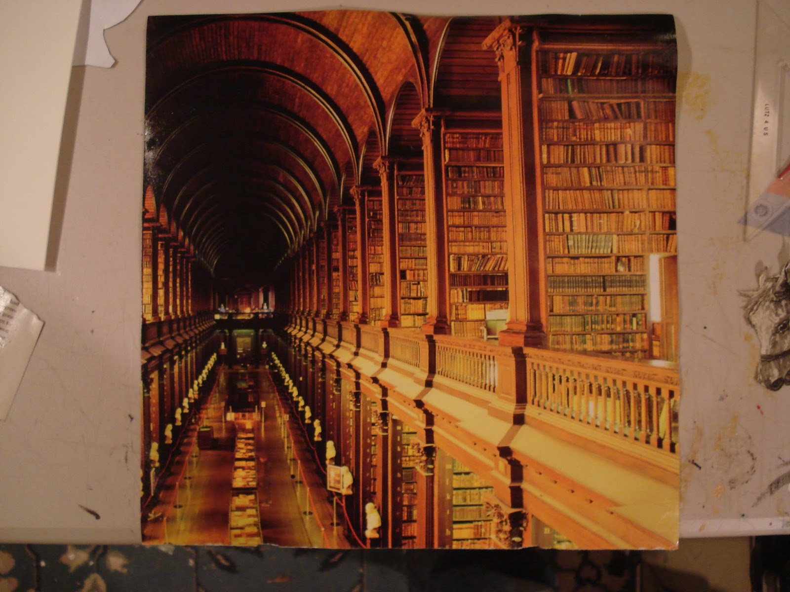 I need to get a better photo of this piece, but I am going to post it now anyway. I absolutely love old book covers with their marbled paper interiors. The colors are so saturated. I thought the grays of a black and white image along with the "lunar accent" would contrast well with the colors of the marbling. I will float this piece with a neutral beige illustration board underneath. This piece will be shown at my exhibit at The Dev (on Deveraux St. in downtown Utica this month). For anyone reading this in the central New York area, the opening reception will be on Wednesday! Photos to follow.